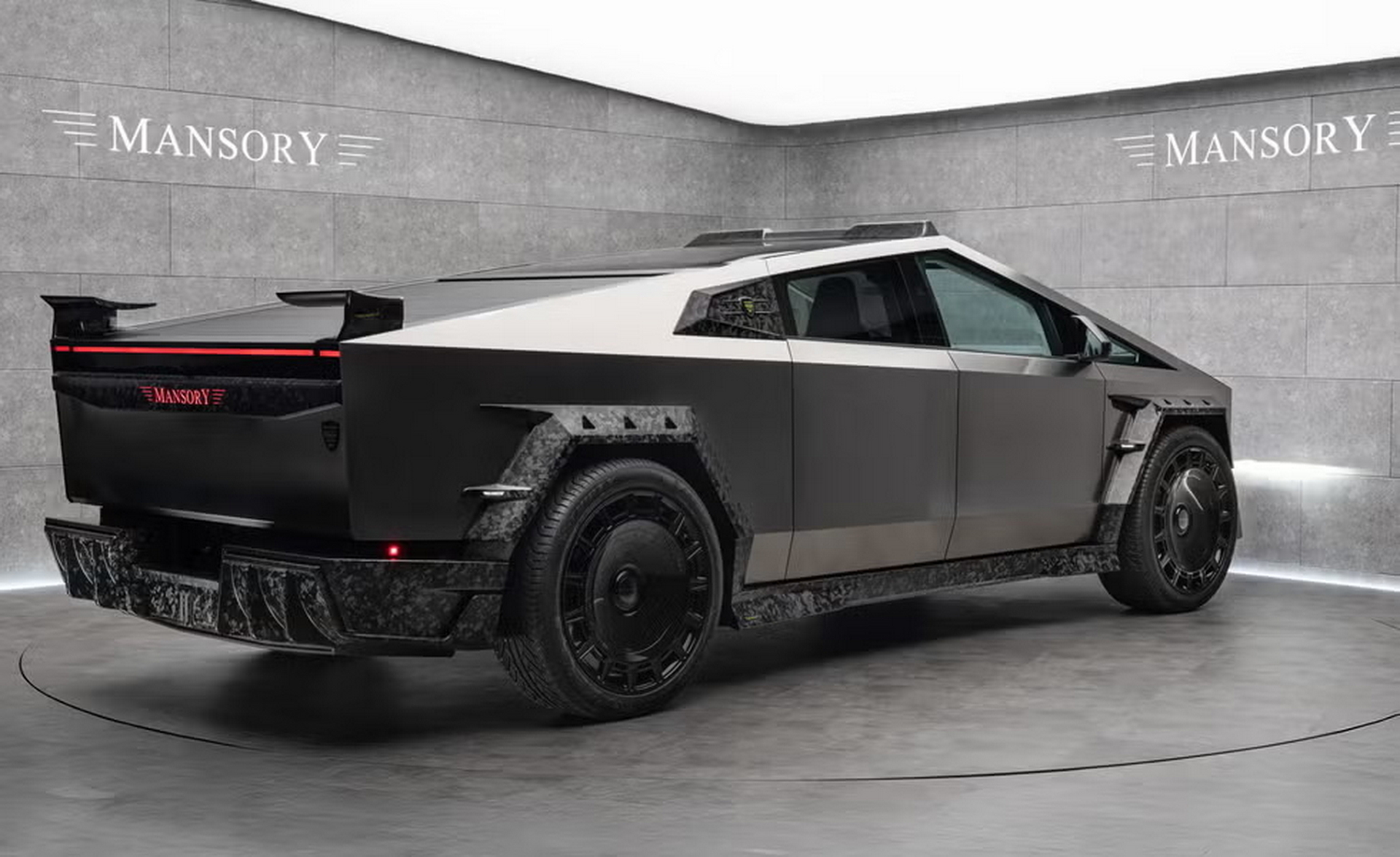 Konkrétní seznam úprav je v článku překvapivě přímočarý: Cybertruck mění přední a zadní nárazník za karbonové náhrady s osvětleným badgingem. Ano, svítící loga – aby to bylo čitelné i ve chvíli, kdy se vám oči snaží utéct z obličeje. Mezi předkem a zadkem to Mansory propojí pomocí karbonových rozšíření blatníků a bočních prahů (side sills). A aby toho nebylo málo, kryty zrcátek jsou také karbonové, stejně jako falešné průduchy a přední „hood“ (přední část kapoty/panel). A Mansory ještě dodává, že typické winglety vzadu mají zajistit, že na první pohled poznáte „opravdové“ Mansory. Protože v dnešní době je důležité, aby i vaše auto mělo okamžitě rozpoznatelnou značku… jako drahý teniskový drop.