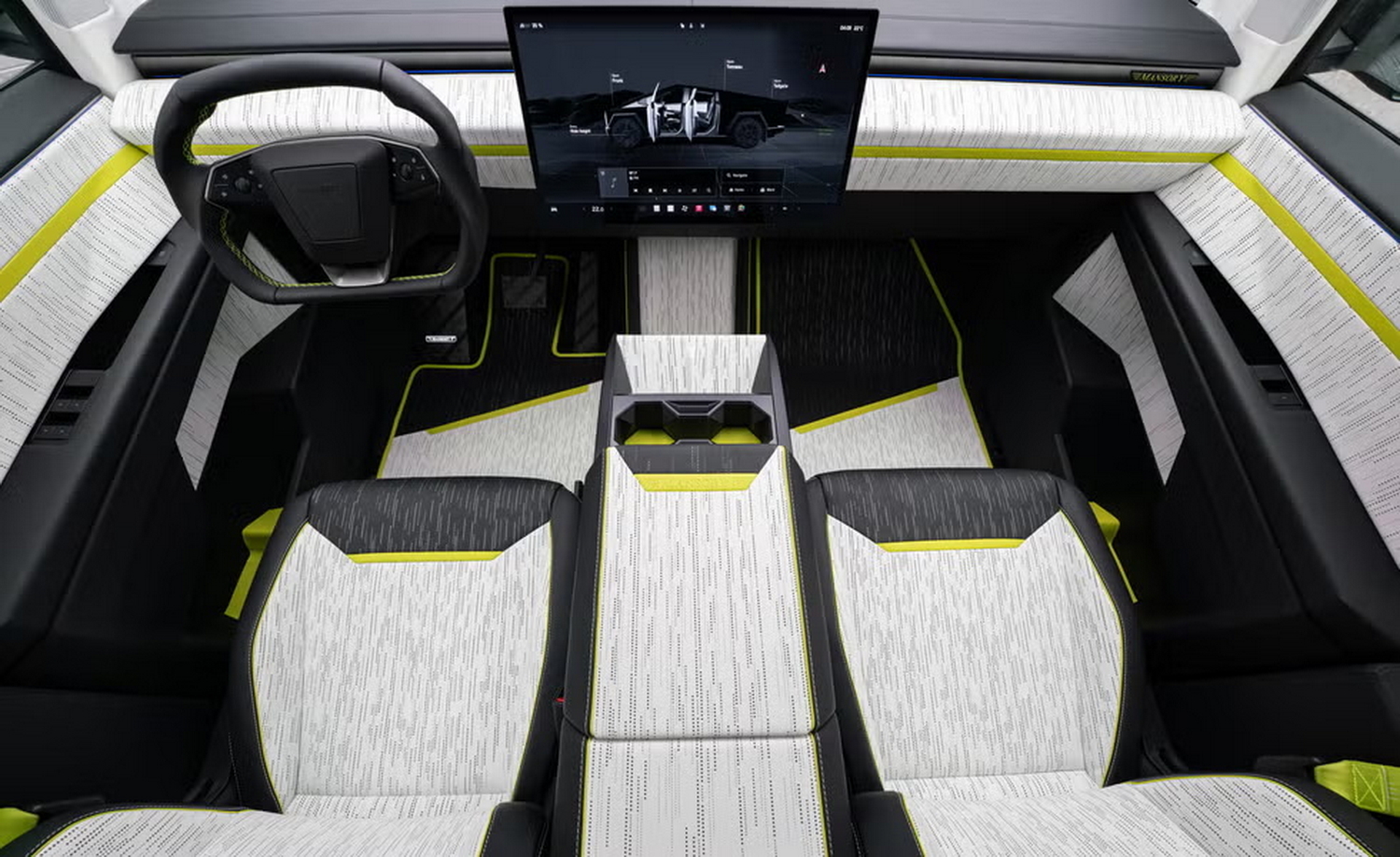 Teď to celé zavřeme a uděláme to tak, aby vám z toho nepraskla pojistka v hlavě. Mansory Elongation je přesně ten typ úpravy, který bude jedni sdílet jako důkaz úpadku civilizace a druzí jako důkaz, že individualita ještě žije. Exteriér dostává karbonové nárazníky se svítícím označením, karbonové rozšíření blatníků, prahy, kryty zrcátek, falešné průduchy i přední panel/kapotu a k tomu dvojici střešních reflektorů. Vzadu jsou winglety, které mají už na první pohled potvrdit, že jde o „opravdové“ Mansory. Uvnitř se pokračuje v přepychu bez studu: šedá, bílá, žluté akcenty a karbon tolik, kolik si zákazník poručí, protože slovo „dost“ se v Mansory zřejmě nevyskytuje. Článek přiznává, že krása je subjektivní, ale zároveň si autor neodpustí, že tohle může být nejškaredější věc z jejich dílny. A přesto: na Cybertrucku to paradoxně sedí, protože ten už z výroby vypadal jako designový experiment pro lidi, co nesnáší obliny. Nakonec je jisté jediné: tohle auto bude všude budit pozornost. Ať už jako atrakce, nebo jako varování.