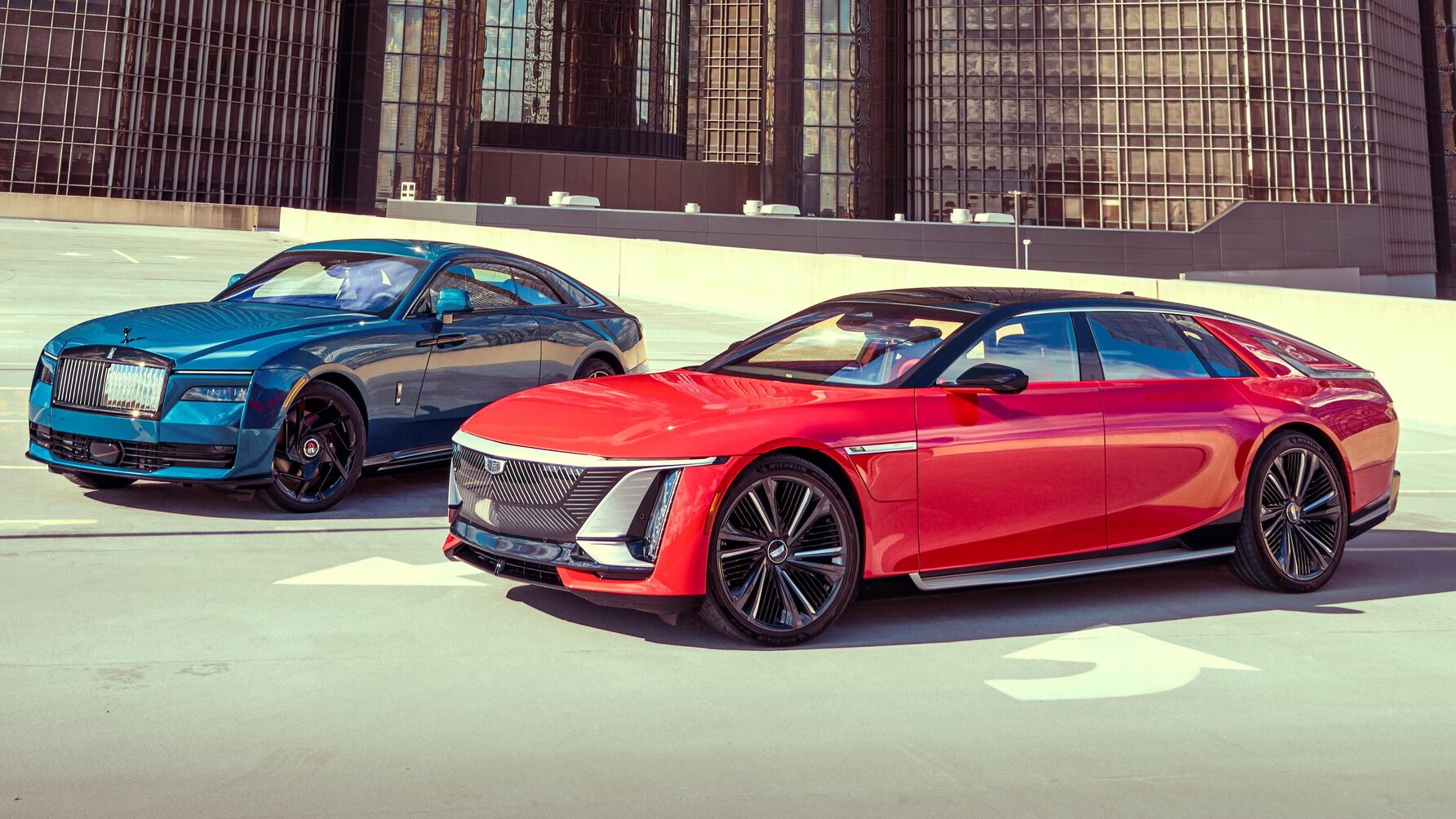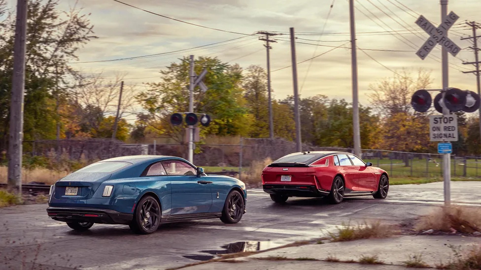 Luxusní špička se loučí s V12: Rolls-Royce Black Badge Spectre (650 bhp, 793 lb ft) čelí americkému Cadillac Celestiq (při startu $340k, pro 2026 přes $400k). V Detroitu se řeší rychlost 0–60 mph za 3,7 s, dojezd 300 mil z 111 kWh i to, kdo umí větší ticho.